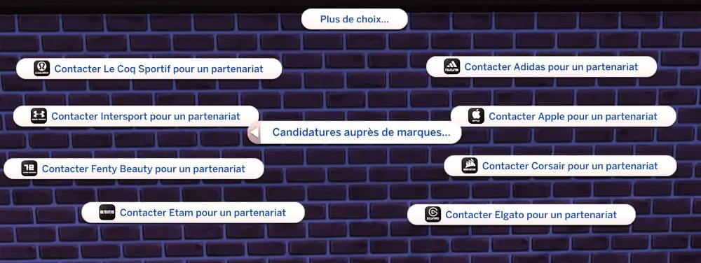 Il va progressivement développer la nouvelle compétence qui vient avec le mod. Celle-ci, intitulée « Influence sur les réseaux sociaux« , va permette de débloquer de plus en plus d’interactions pour se faire connaître et décrocher les fameux partenariats.