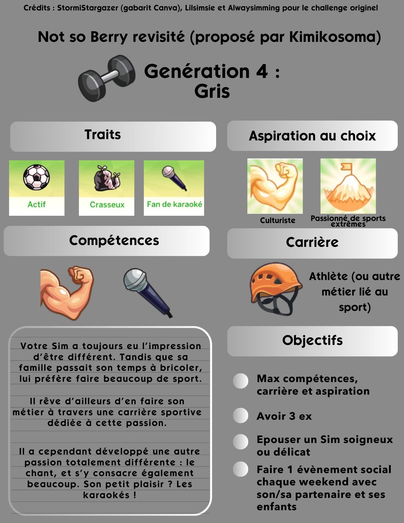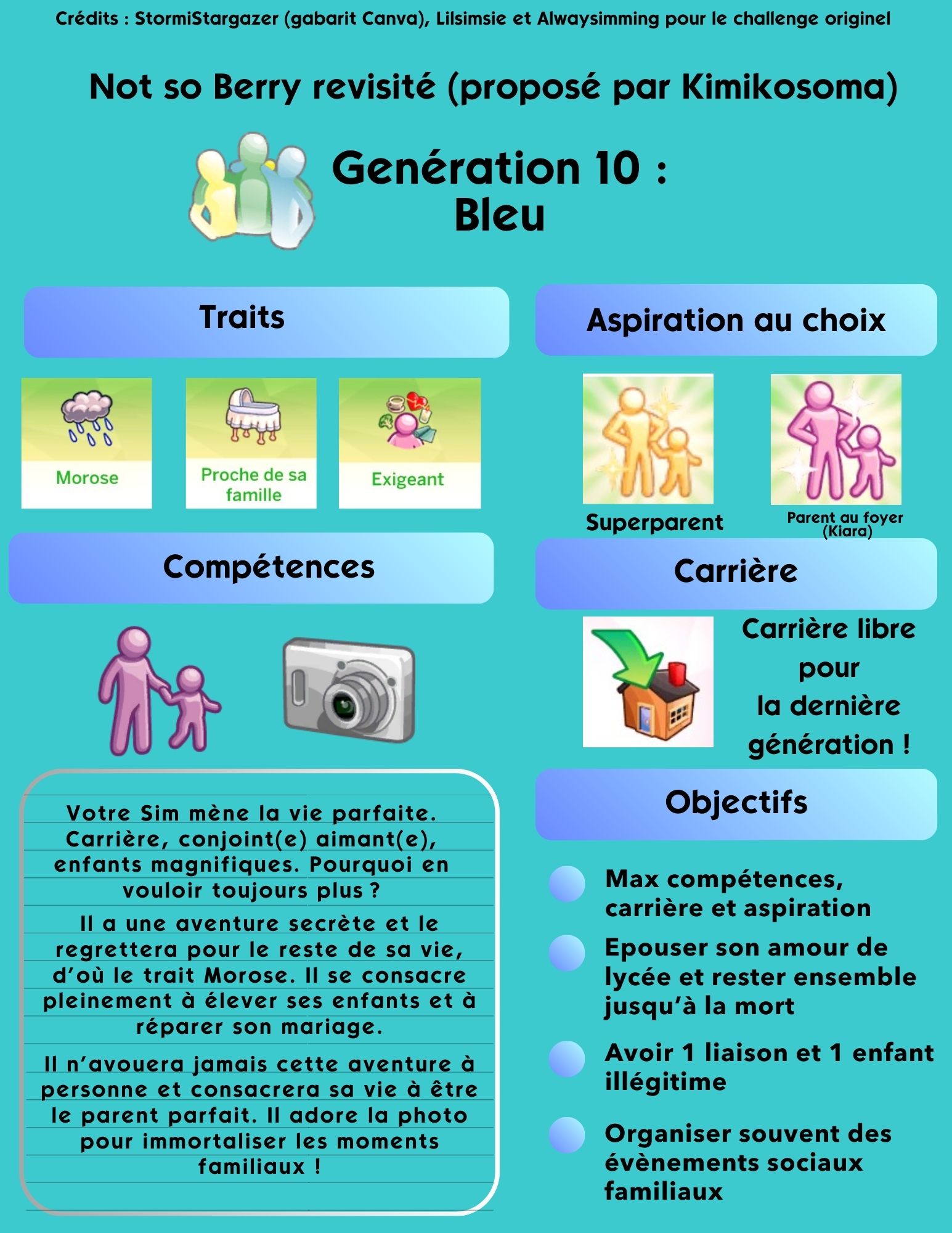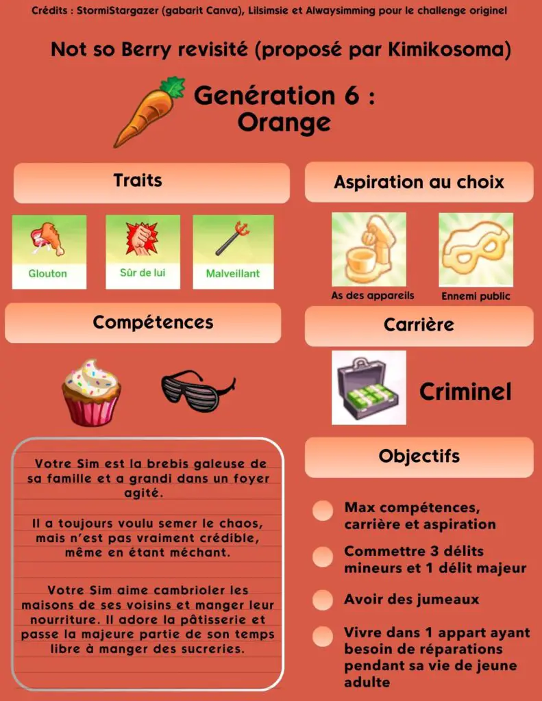 Vous pourrez retrouver ici les règles du challenge initial (en anglais) : https://lilsimsie.tumblr.com/post/157671494755/not-so-berry-legacy-challenge